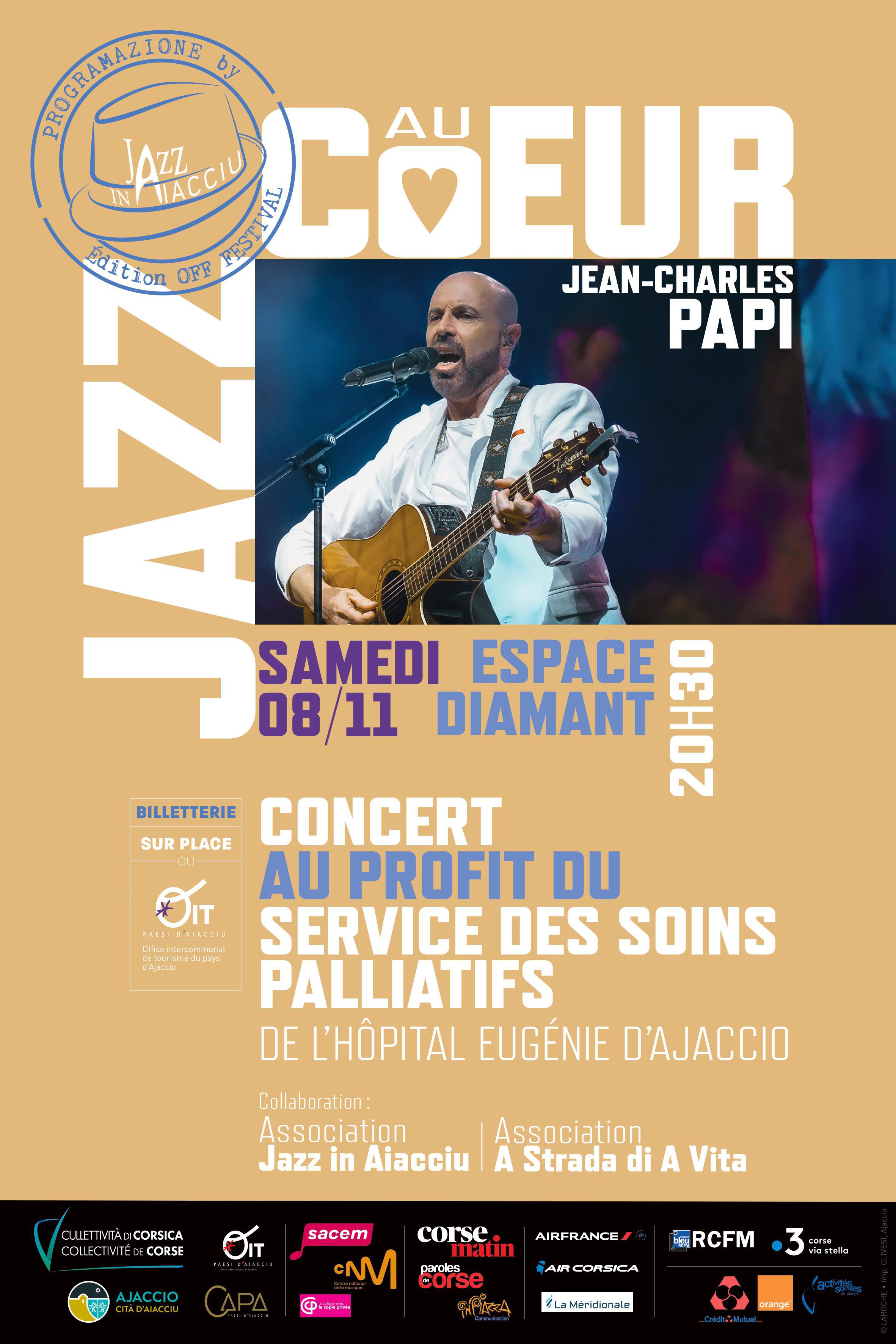 Jean-Charles Papi, Bonjour à tous, je vous donne rendez-vous le 8 novembre 2025 sur la scène de l’Espace Diamant d’Ajaccio pour un concert réalisé au profit du service des soins palliatifs de l’hôpital Eugénie 🙏🏻