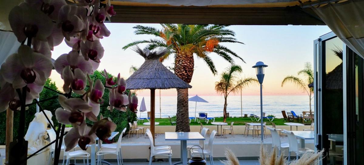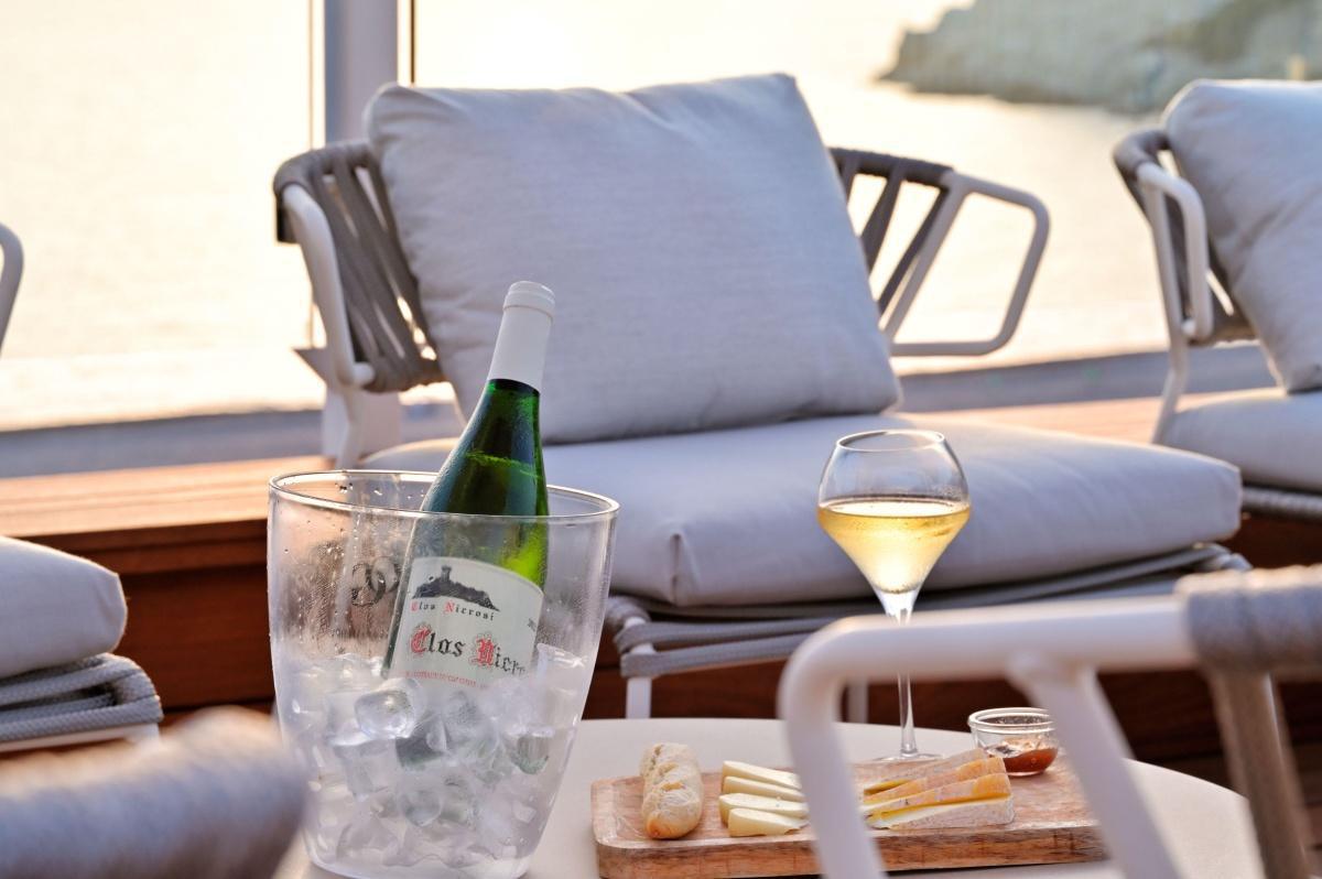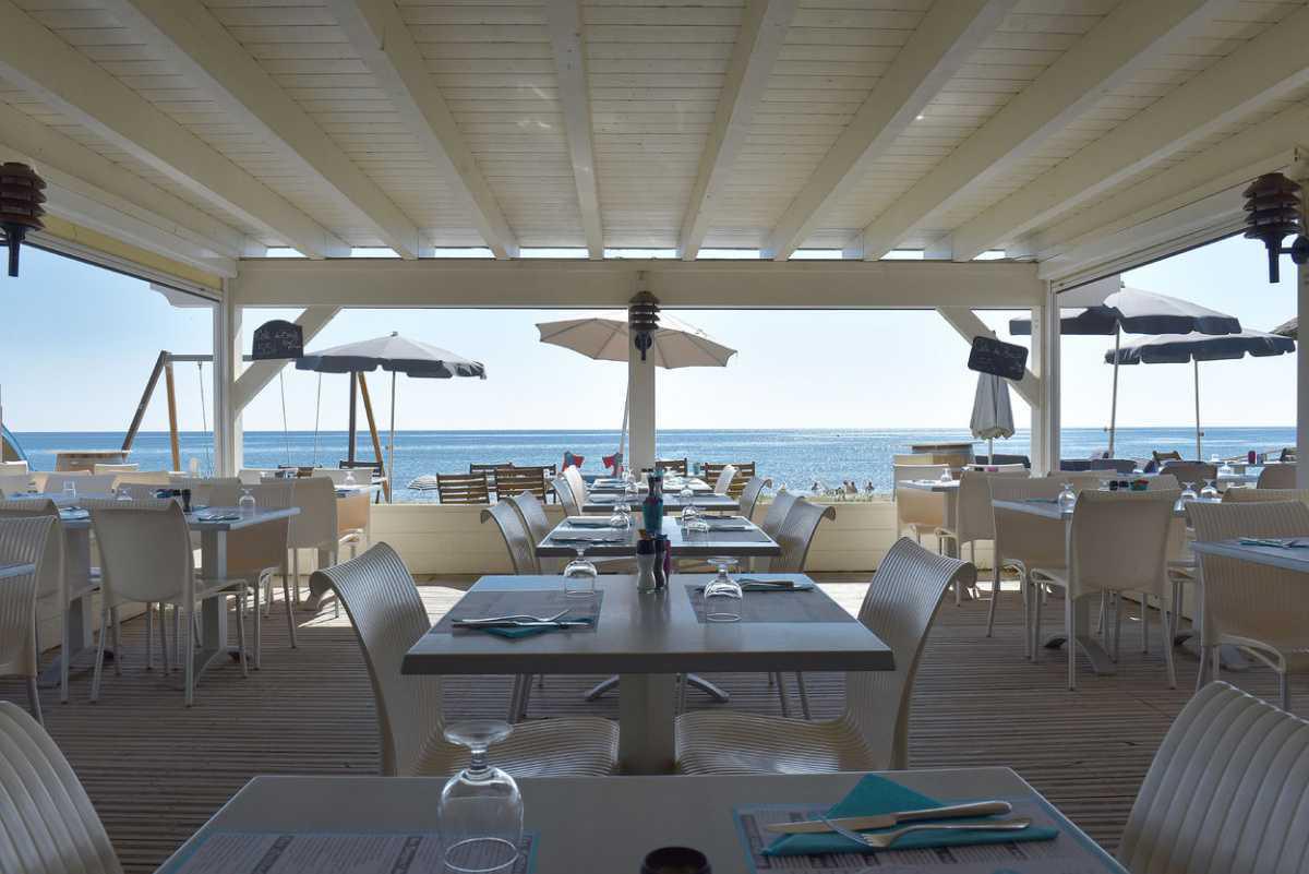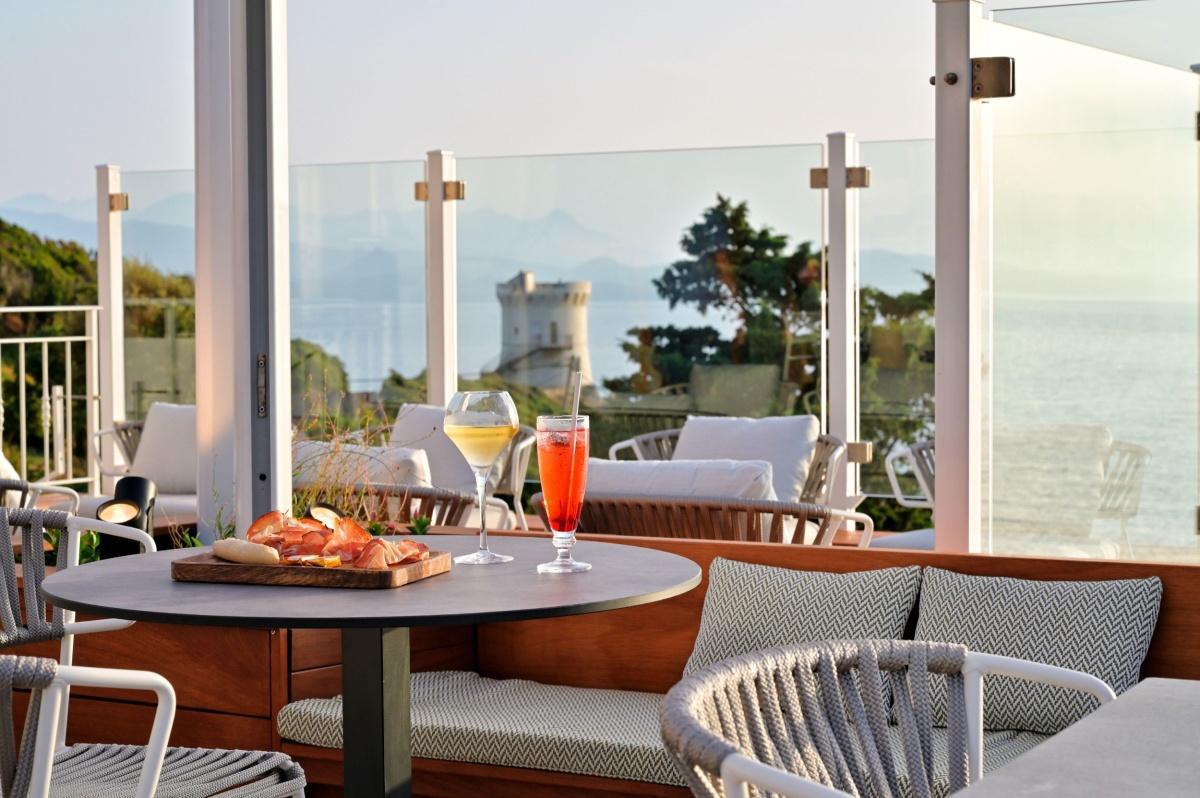 Si tous les espaces de vie de l’hôtel sont idéalement tournés vers la mer, l’endroit le plus propice pour profiter pleinement de la baie protégée de Pinarello reste la plage aménagée aux pieds de l’hôtel.