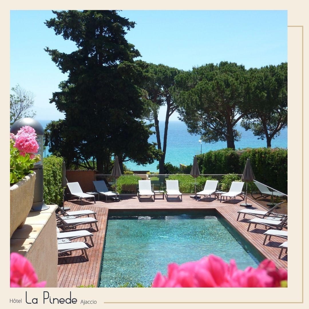Idéalement situé au calme, niché dans un écrin de verdure face aux eaux turquoise de Barbicaja, probablement l’une des plus belles plages de sable fin de la cité impériale sur la route des Sanguinaires, l’hôtel La Pinède à Ajaccio vous ouvre ses portes en Corse-du-Sud.
