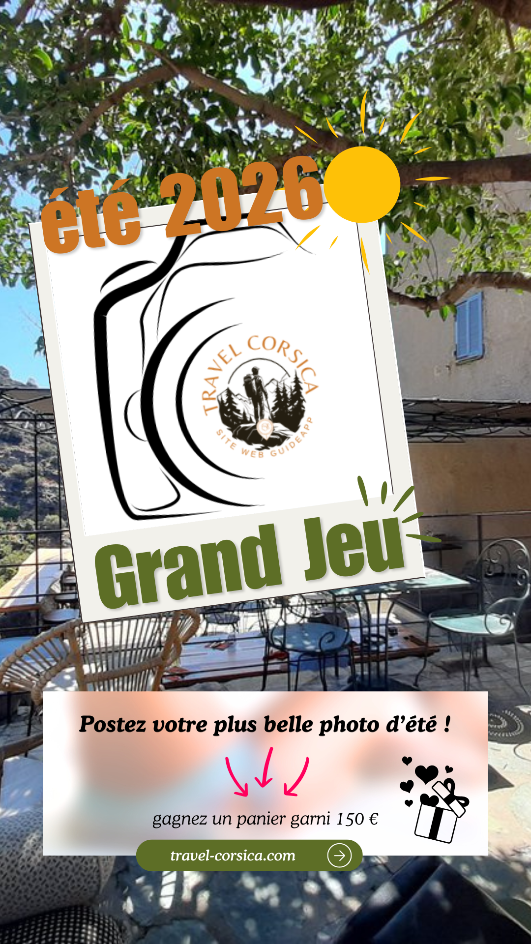 En validant votre passage ici, vous devenez partenaire VIP et participez à notre grand Jeu de l'été 2026 . Panier garni d'une valeur de 150 € à gagner*. Pour valider votre passage et participer CLIQUEZ-ICI . Rendez-vous en Octobre 2026 pour le tirage au sort sur le compte instagram BALADES EN CORSE.